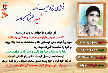 شهید «مجید خوزستانی» از شهدای والامقام دفاع مقدس استان ایلام است که دیماه ۱۳۶۳ در جبهه جوانرود به فیض عظیم شهادت نائل آمد. در وصیت نامه اش سفارش کرده بود نسبت به فقرا کملطفی نکنید و همیشه در کارهایتان فقط خدا را ناظر بدانید.
